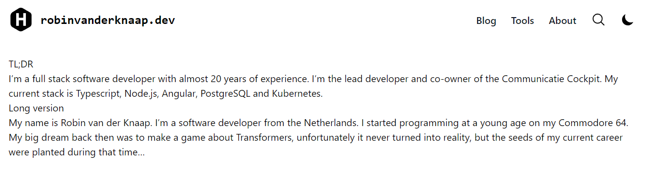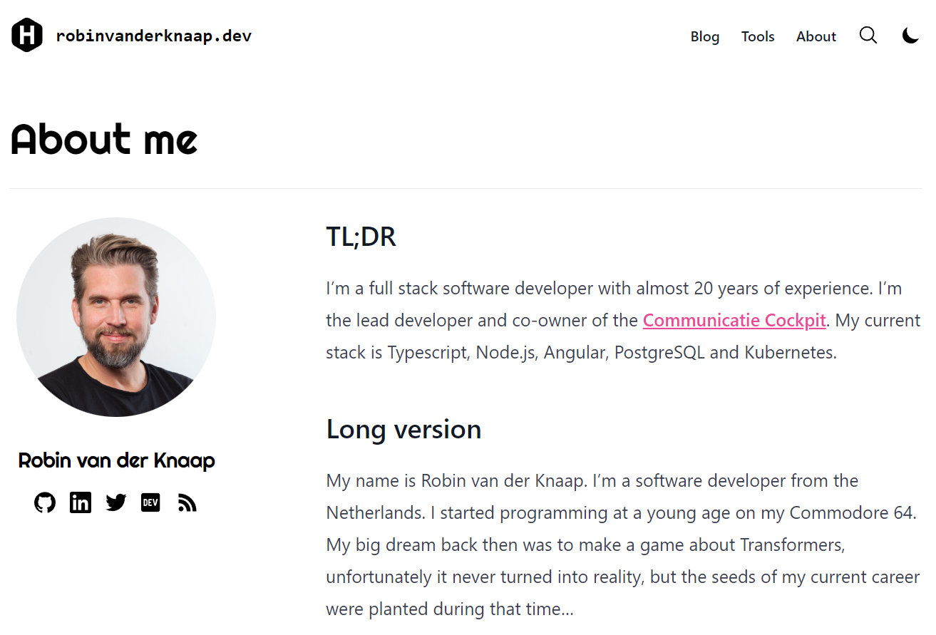 Last year I’ve been building two websites using Hugo: our corporate website communicatie-cockpit.nl and my personal blog robinvanderknaap.dev.