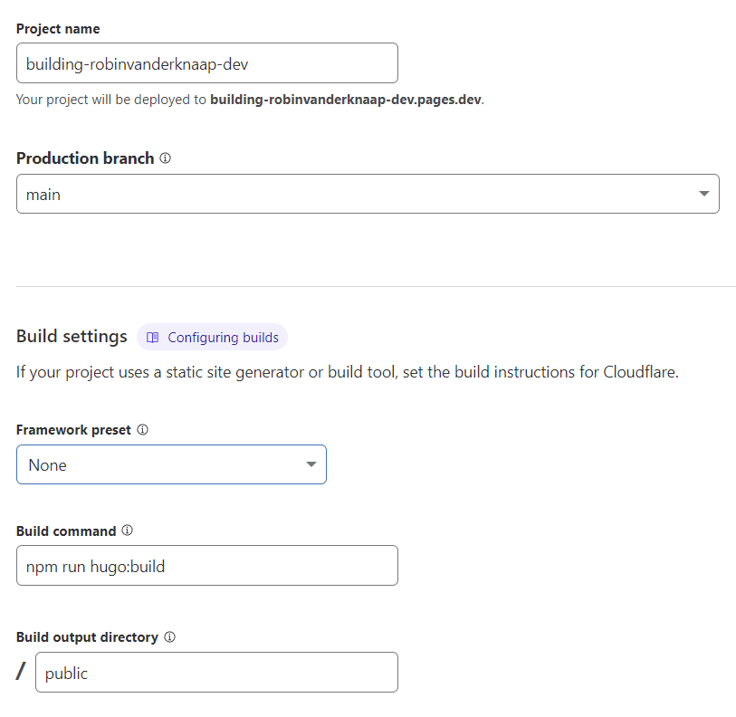 Make sure the URL generated for you by Cloudflare equals the one that is set in Hugo’s configuration file,